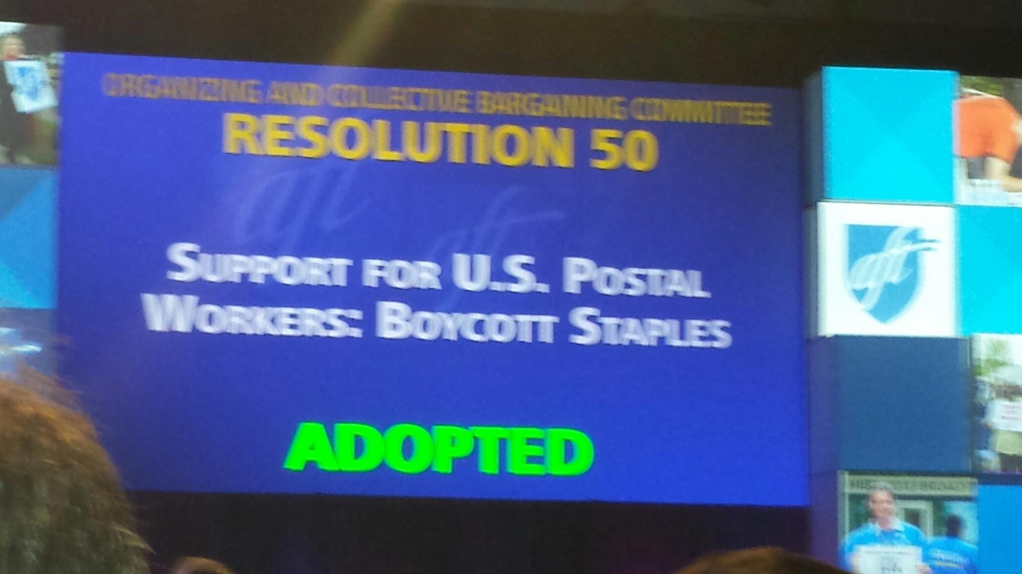 AFT passed a resolution in support of APWU’s boycott against Staples Inc.