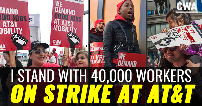 There will be events today, Saturday and Sunday, and members are encouraged to participate. Click here to find a picket line near you. In standing with our brothers and sisters at AT&T, we can stand up against corporate greed and fight for good jobs for all of us!