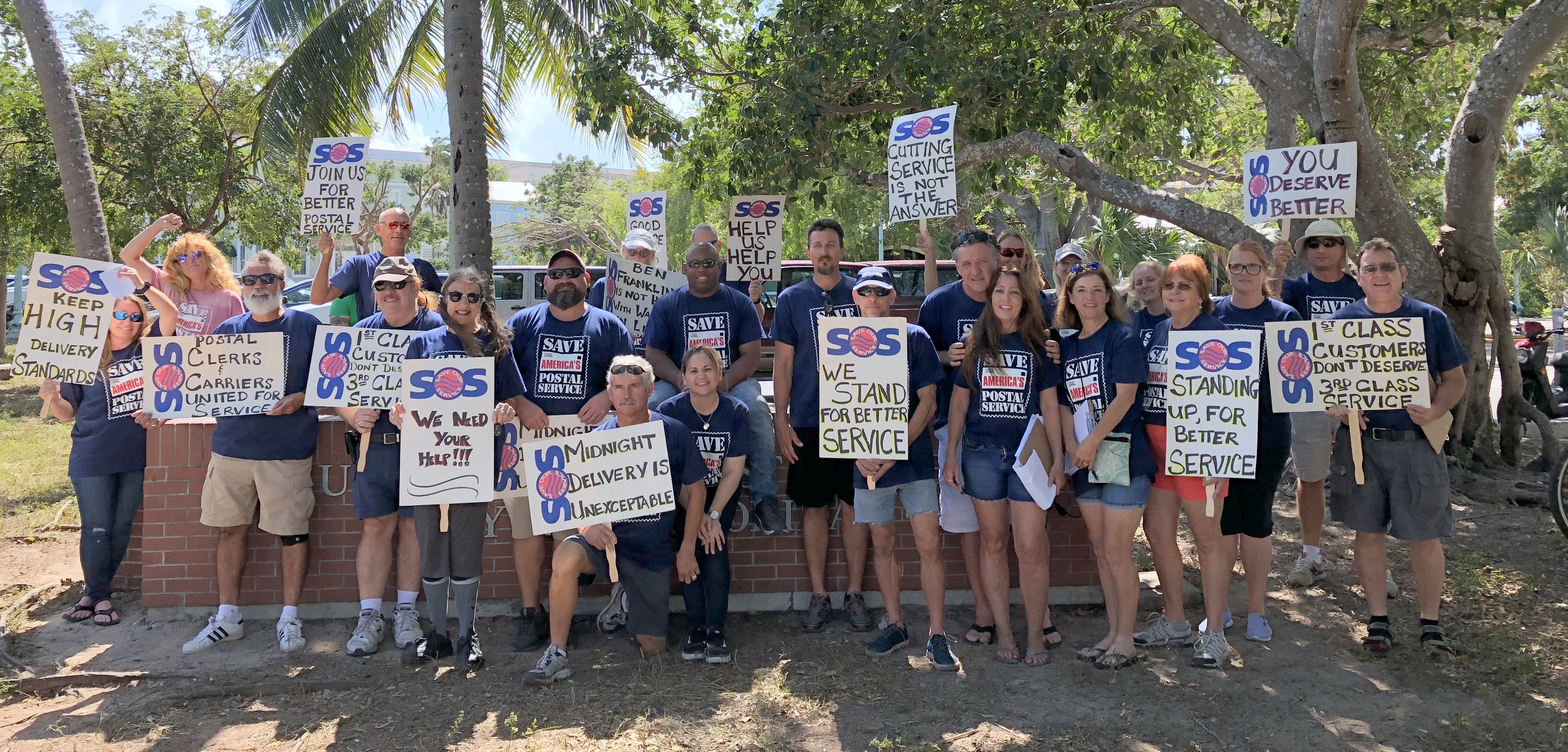 “It’s not just us, we know it’s nationwide,” Cruz said. The APWU and NALC Florida Keys locals, “are two small locals at the end of US 1, but we are loud and we want everyone to know that we may be at the end of the road, but we are here.”