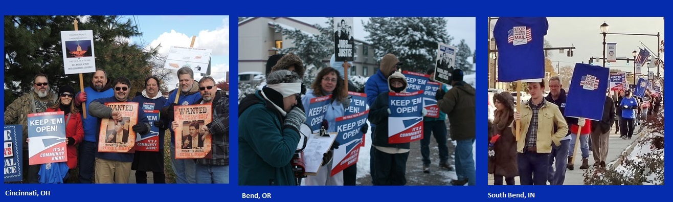 The protests received extensive media coverage in print, on the radio and on T.V. The events were designed to thwart USPS plans to lower service standards; delay all mail throughout the nation, and close or consolidate 82 mail processing centers.