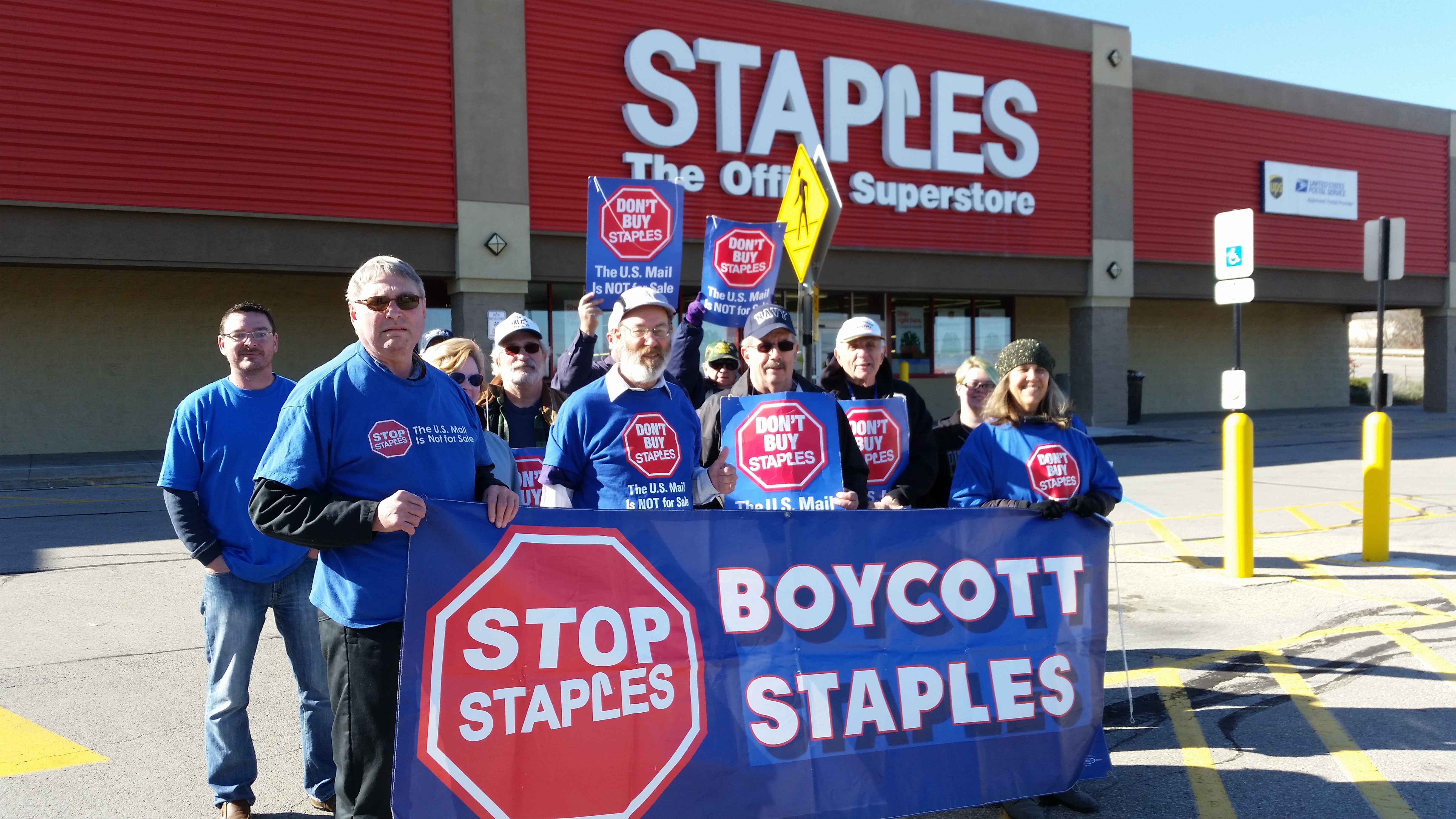 Members of the Western Pennsylvania Postal Solidarity Committee held a Stop Staples protest in front of a location in Monaca on Sunday, Nov. 13.