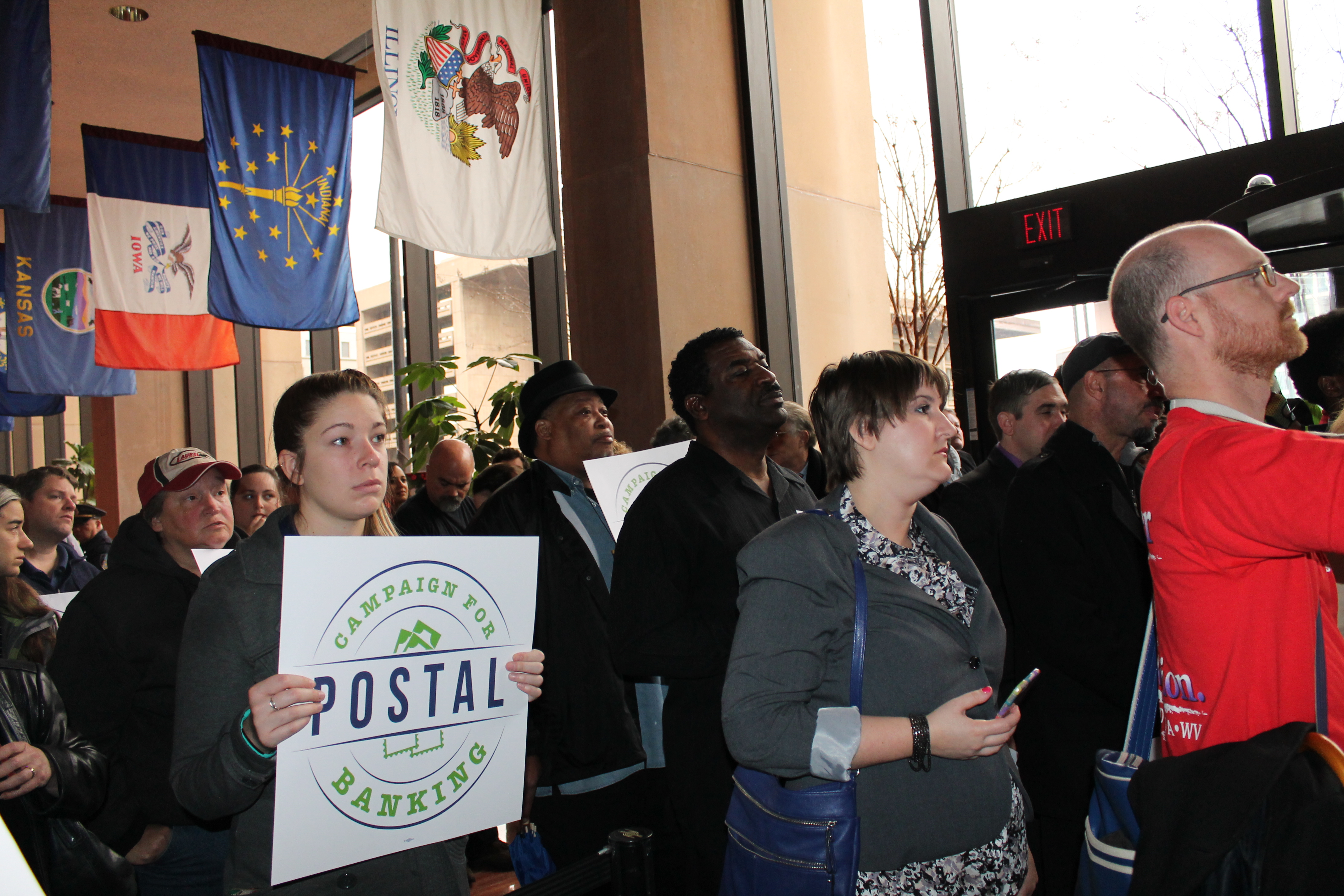 Speaking after the event, APWU President Mark Dimondstein said that through postal banking, the USPS “can step in to fulfill its mission of providing universal service while strengthening the public Postal Service and protecting good jobs that our communities need.”