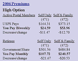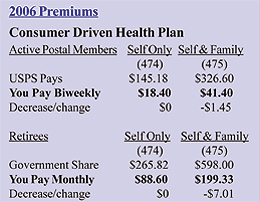 Premium costs in the Federal Employees Health Benefits (FEHB) Program will increase an average of 6.6 percent in 2006, but not at APWU Health Plan. Premium costs for the Consumer Driven Health Plan and High Option are either the same or lower than in 2005. With an outstanding price, a choice of two options, and top quality of service, APWU Health Plan is the real deal in 2006. (Open Season is Nov. 14 – Dec. 12.)