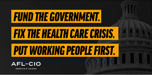 Members are encouraged to call their senators today and urge immediate action to reopen the government, protect healthcare benefits, and ensure public services are fully funded.