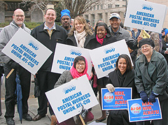 APWU officers and staff joined hundreds of other union members and labor activists at a rally Feb. 23 in support of collective bargaining rights for the 40,000 Transportation Security Officers who work in the nation’s airports.