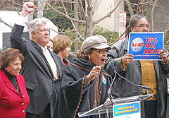 AFL-CIO Executive Vice President Arlene Holt-Baker and Secretary-Treasurer Liz Schuler energized the crowd by urging them to make themselves heard a block away at the White House.