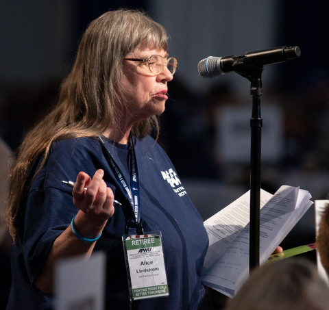 Delegates spent much of the convention’s second day considering resolutions submitted to the Constitution Committee, chaired by Minneapolis Area Local President Peggy Whitney.
