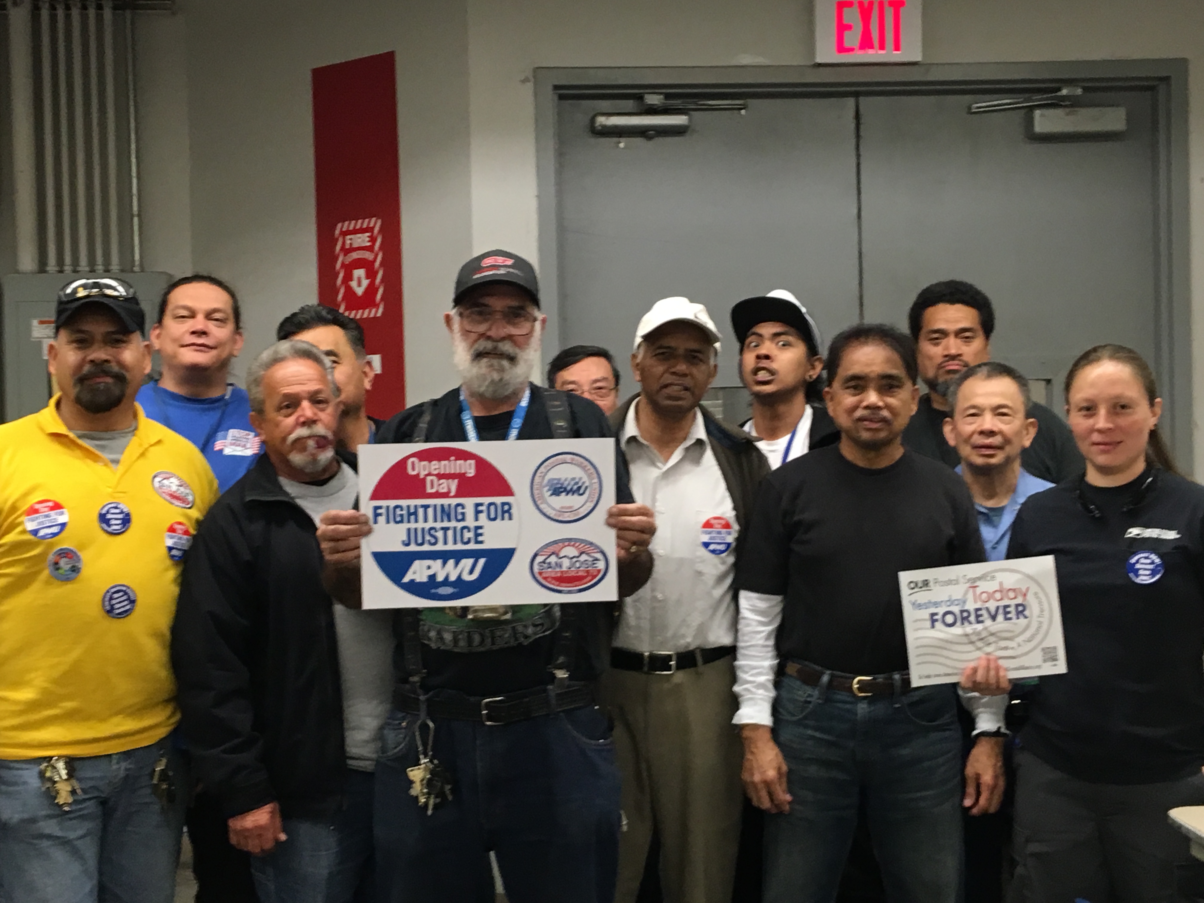 “Today throughout the APWU represented workforce all over the country, thousands are donning stickers, ‘Opening Day, Fighting for Justice.’