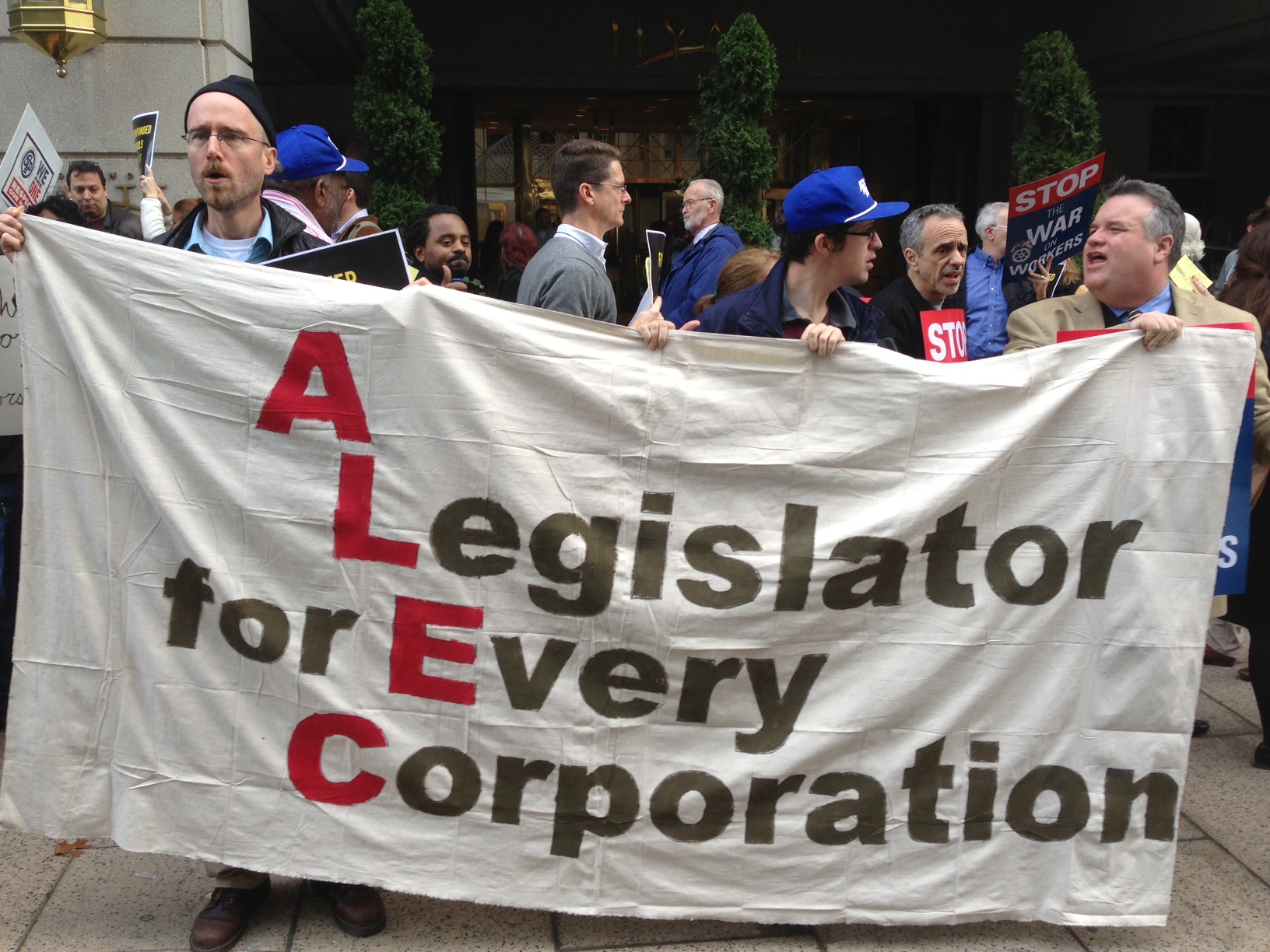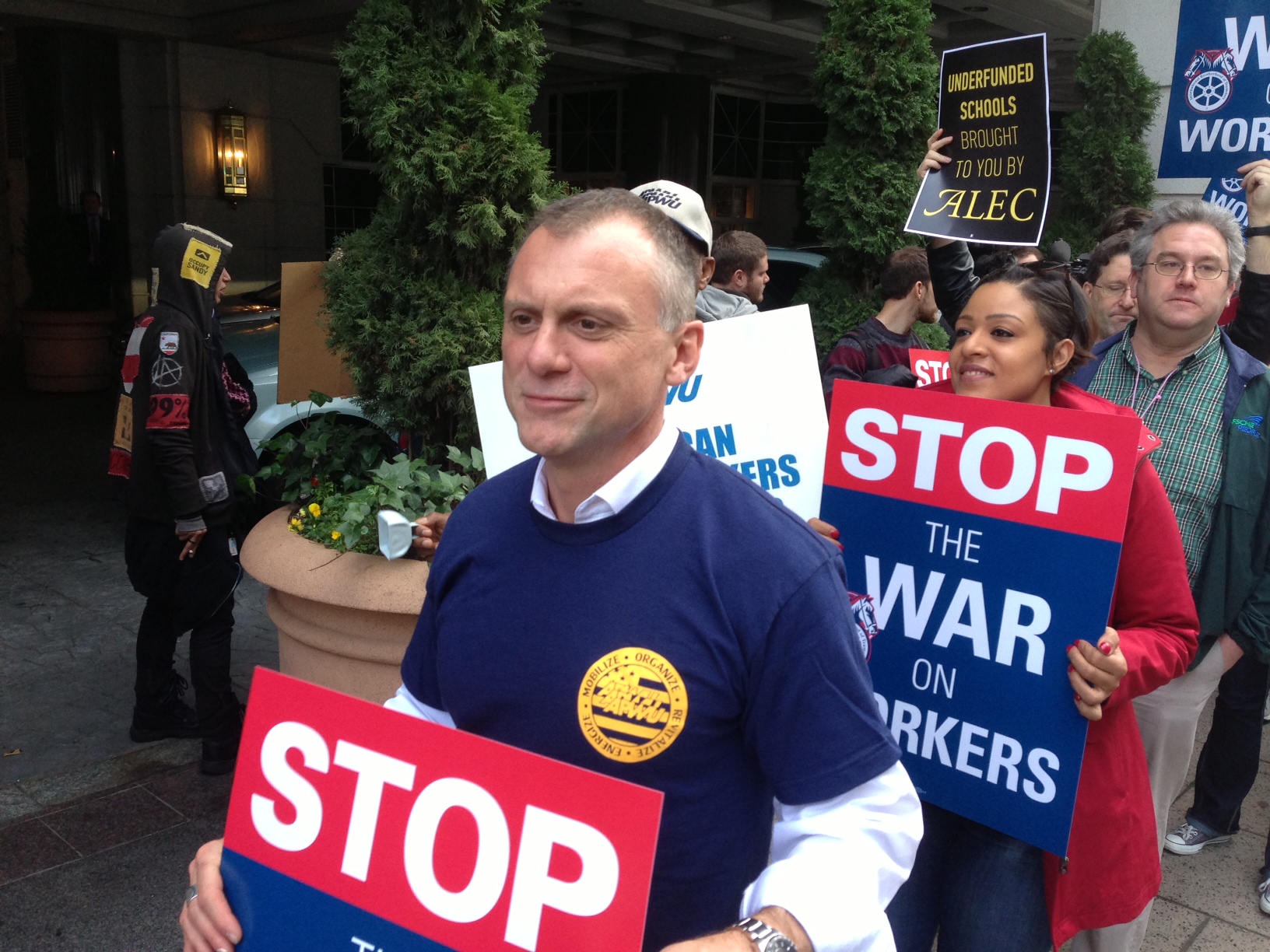 On Thursday, Dec. 6, APWU national officers and HQ employees took to the D.C. streets with labor and activist allies in protest against the American Legislative Exchange Council (ALEC). Yesterday the shadowy right-wing group known for pushing its anti-worker agenda in the states, was paid a visit by APWU and allies who shed some light on the secretive and destructive practices.