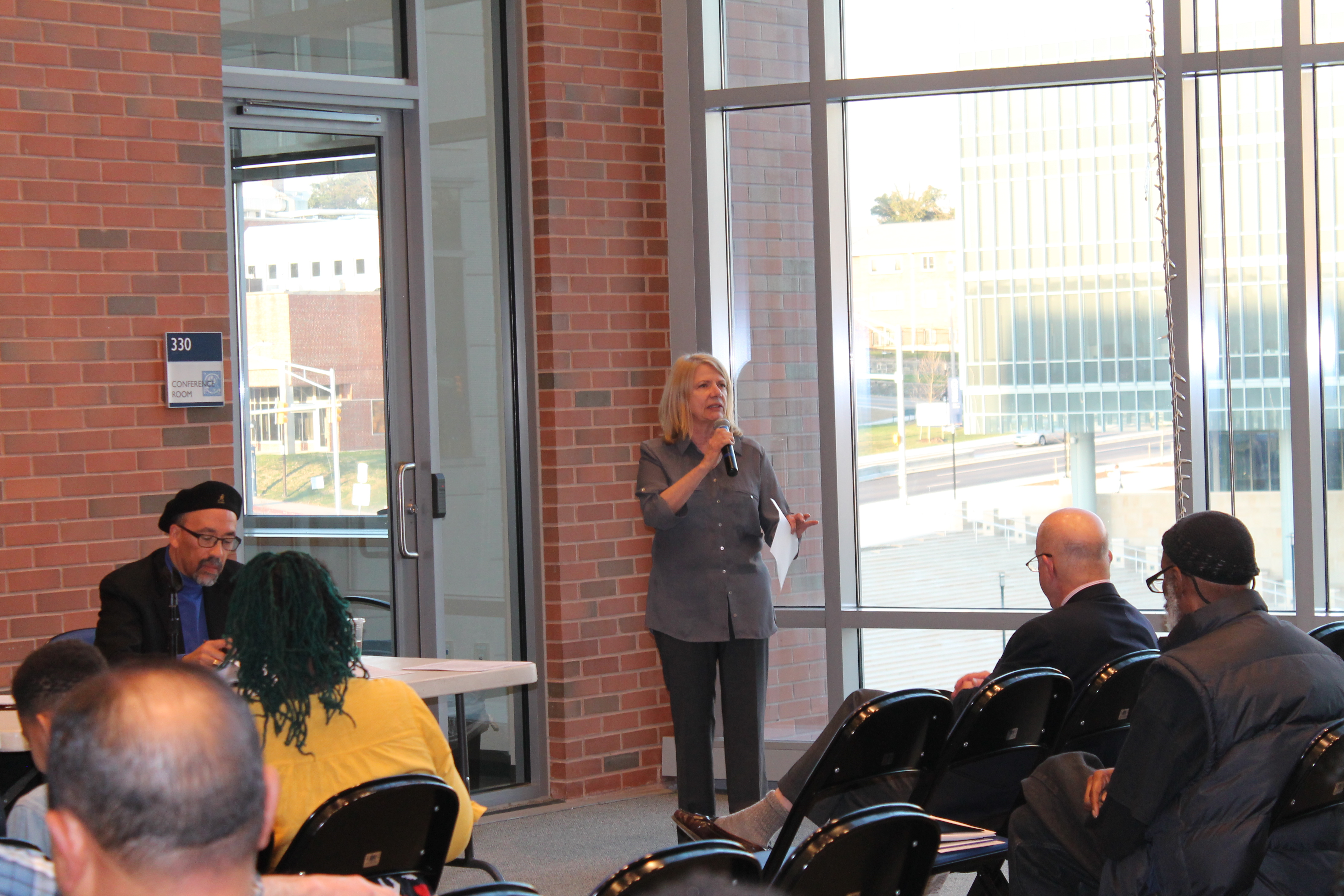 A panel of community leaders heard testimony from people who discussed what the Postal Service means to them and their families. Mary Pat Clarke, Baltimore City Councilmember; Rev. Dr. Alvin C. Hathaway, senior pastor of Union Baptist Church, and Dr. Marvin “Doc” Cheatham,  civil rights activist, served on the panel.  Bill Fletcher Jr. served as the moderator.