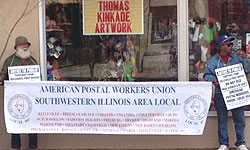 Active members and retirees from the Southwestern Illinois Area Local 407, which represents APWU members in Belleville, participated in the protest, along with members of the National Association of Letter Carriers Local 155, the Southwestern IL Central Labor Council AFL-CIO, and officers from various APWU locals and state organizations who were in nearby St. Louis attending training sessions.