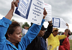 At a May 7 rally, hundreds of Berkeley residents crowded the sidewalks outside the facility to protest USPS plans and to urge California’s U.S. senators, Barbara Boxer (D) and Diane Feinstein (D), to support the Postal Service Protection Act (S. 630). Only that kind of action would stop the red ink, APWU East Bay Area Local President Steve Lysaght told the Mercury News.