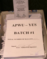 Results showing the voting by individual locals will be posted on the APWU Web site as soon as they become available. The local-by-local count is expected to take several weeks.