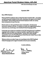 “I invite you to select specific organizations such as the Postal Employees Relief Fund, the United Way, or other charities to receive your contribution.