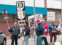 “The way I see it,” said David Wigley, the local’s president, “it could mean anything from taking away one tray of mail to an entire closure of the place.” About 100 picketers turned out for a weekday rally in early May.