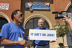 “The word ‘postal’ is part of a brand name that touches the lives of every citizen six days a week,” Burrus said, “so there is immediate recognition of any business or organization that uses the word in its name. In this sense, our reputation is being used as a means to make money. We’re hoping that this demonstration can help postal workers win back our good name.”