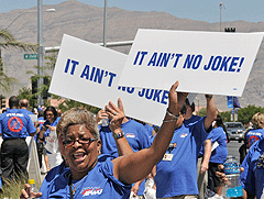 Las Vegas Area Local President Joe Lewis opened the APWU convention with a promise that the weather for the protest on Aug. 21 would be a “cool 100 degrees” and he almost made good on his pledge: It actually was only in the mid-90s when the demonstrations ended.