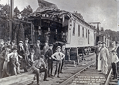 Standing while they worked in the speeding cars did not help the clerks’ chances in a crash. In a wreck or derailment, workers easily became victims of shifting, heavy items. Burning lamps and stoves and sparks from wood-burning steam engines were an added hazard in the wooden, mail filled cars. Railway companies were slow to replace these firetraps with metal cars, which were more costly to build and maintain.