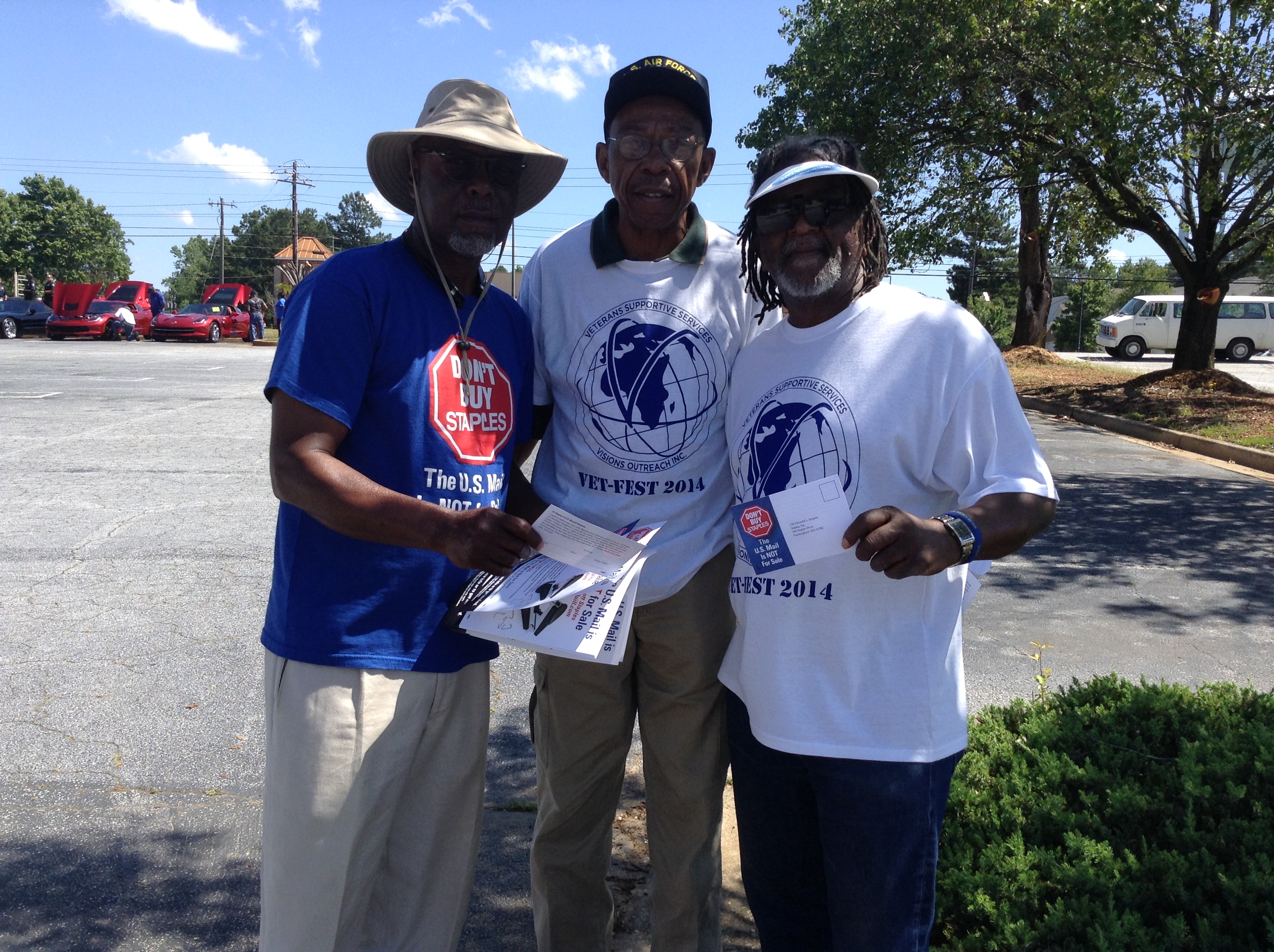 During a July protest outside a store in Cupertino, CA, APWU retiree Ernest Johnson spoke with a professor who had been given a Staples gift card by his students.