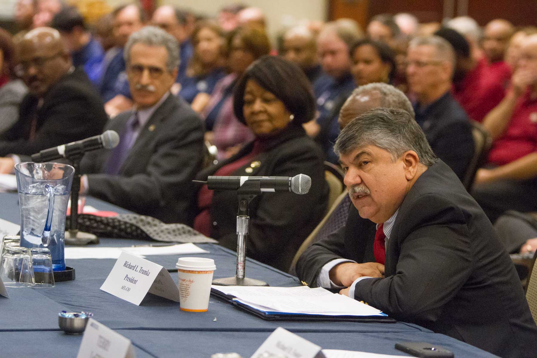Also observing the session were Congresswoman Eleanor Holmes-Norton (D-DC); Jim Hightower, commentator and editor of the Hightower Lowdown; Larry Cohen, president of the Communications Workers of America; J. David Cox, president of the American Federation of Government Employees; Matt Myers representing AFSCME President Lee Saunders; Clayola Brown, president of the A. Philip Randolph Institute, and Rev. Terry Melvin, president of the Coalition of Black Trade Unionists.
