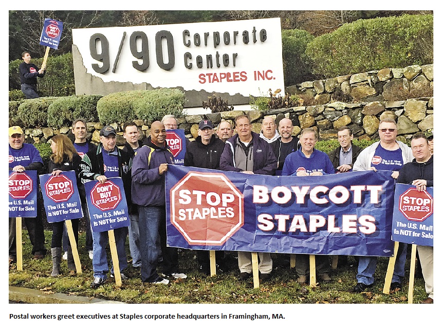 In cities and towns around the country, postal workers and supporters continue to bring the Don’t Buy Staples message to the people. Protests are ongoing in Boston, Philadelphia, New York, Pittsburgh, Atlanta, and the San Francisco Bay Area.