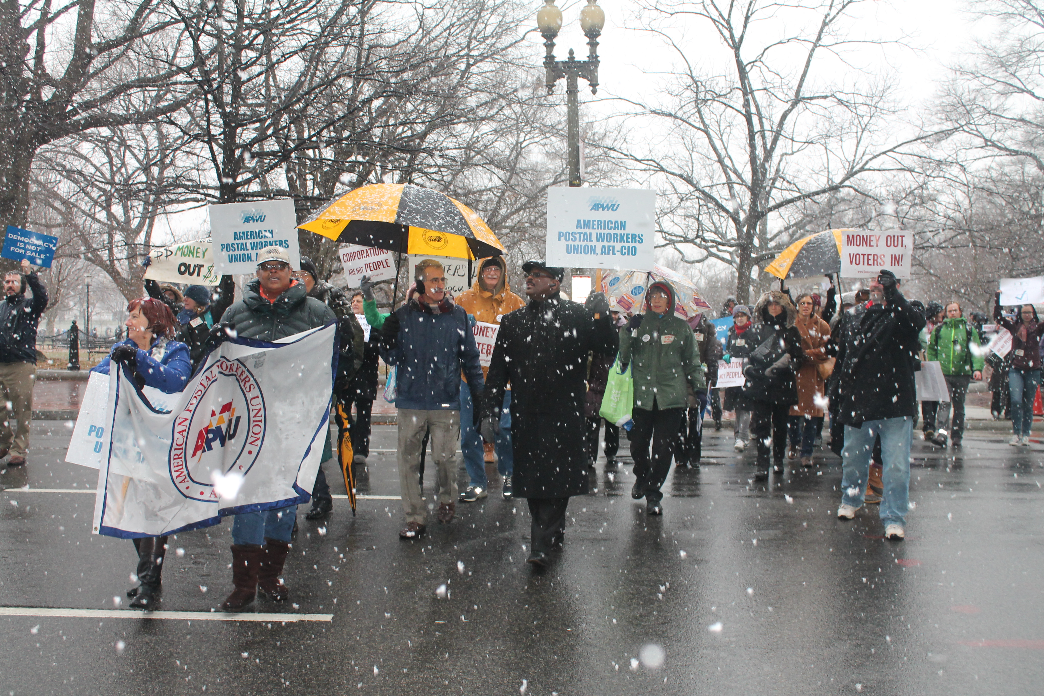 Right: The APWU joins the march from Lafayette Square to the Chamber of Commerce.
