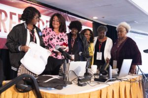 An In Memoriam service was held to honor the lives of those who passed away between conferences (2024-2025). A special ceremony was held in remembrance of union activist Yolanda “Yoggi” Riley, San Fernando Valley Oldies Retirees Chapter, who passed away in 2025. Several APWU members and national officers, including President Mark Dimondstein, Executive Vice President Debby Szeredy, Maintenance Director Idowu Balogun, Assistant Maintenance Craft Director Terry B. Martinez, Organizing Director Anna Smith, and Western Region Coordinator Omar Gonzalez, expressed condolences and shared fond memories.