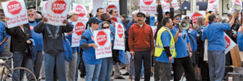 Next, the focus shifted to California, one of four geographic areas with postal counters. On Jan. 28 APWU members held spirited protests outside Staples stores in San Francisco and San Jose. “We’re here to let the American people know that it’s the people’s post office and we can’t let Postal Service management put postal retail units inside private, for-profit stores at the expense of the American public,” Western Region Coordinator Omar Gonzalez told a San Francisco television station.
