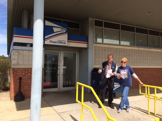 APWU members passed out flyers outside post offices on April 15, spreading the word to customers that the Postal Service does not receive a dime of taxpayer money. Click here for more photos.