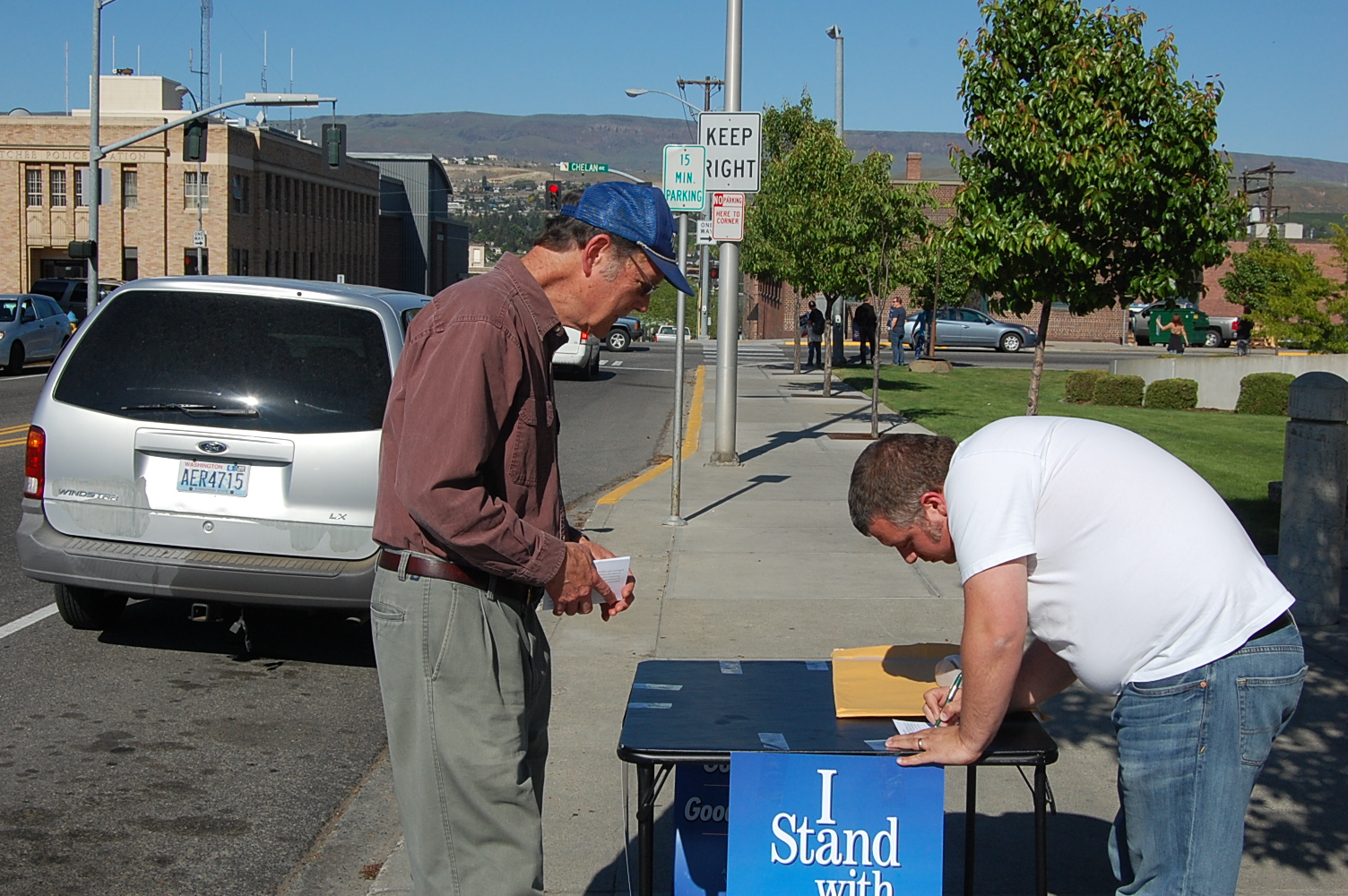 Jamie Donahue, a member of the Wenatchee Local, said customers who got out of their cars to ask for more information received in-depth brochures, along with postcards.