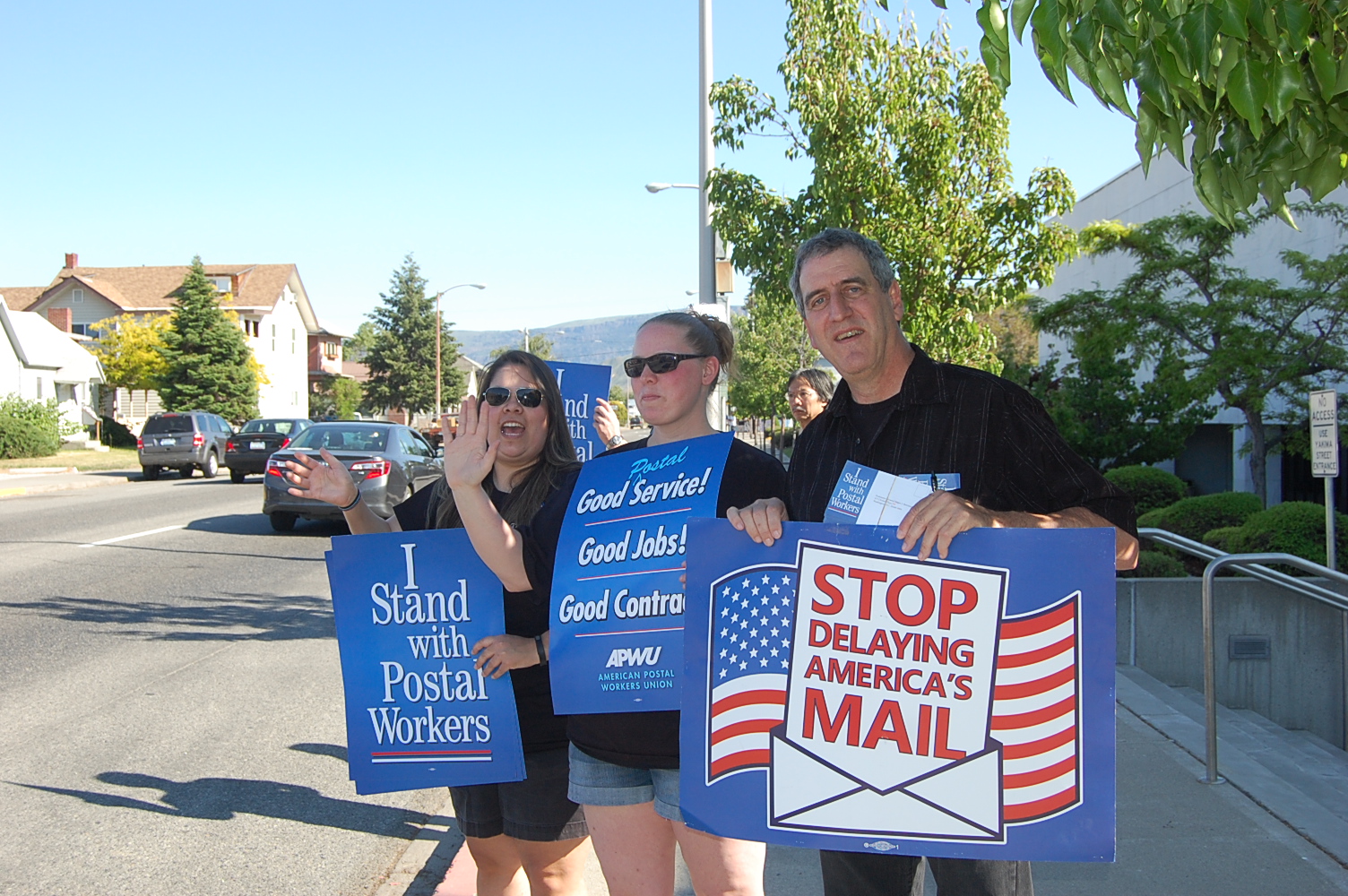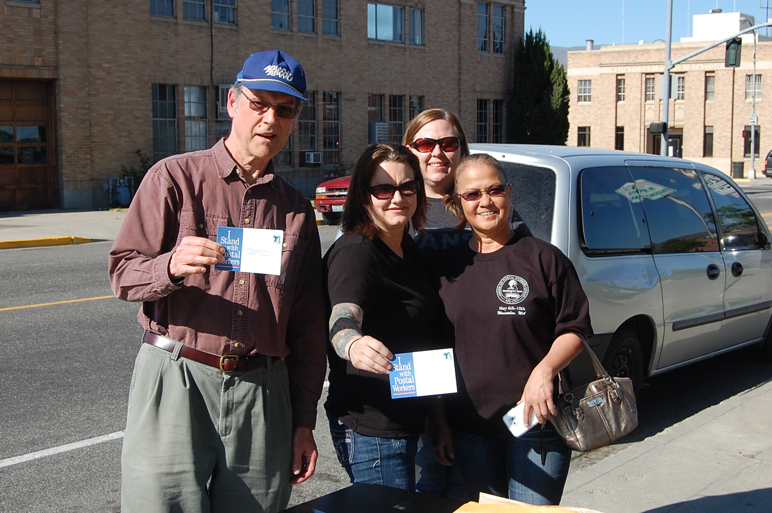 Members of the Washington American Postal Workers Union took a break from a state conference to distribute “I Stand with Postal Workers” postcards outside the Wenatchee Post Office on May 7.