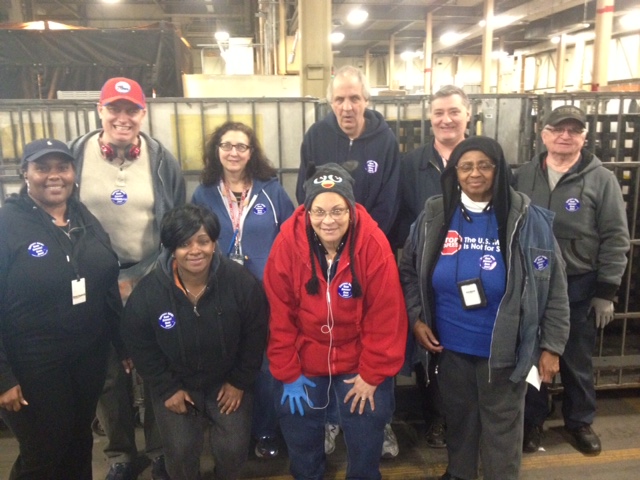 As contract negotiations got underway, APWU members across the country displayed union solidarity. Whether they wore stickers that said “Contract Now! Good Service! Good Jobs!”, headbands that said “Standing Up! Fighting Back!”, or other union gear, APWU members showed support for the campaign for a good contract.